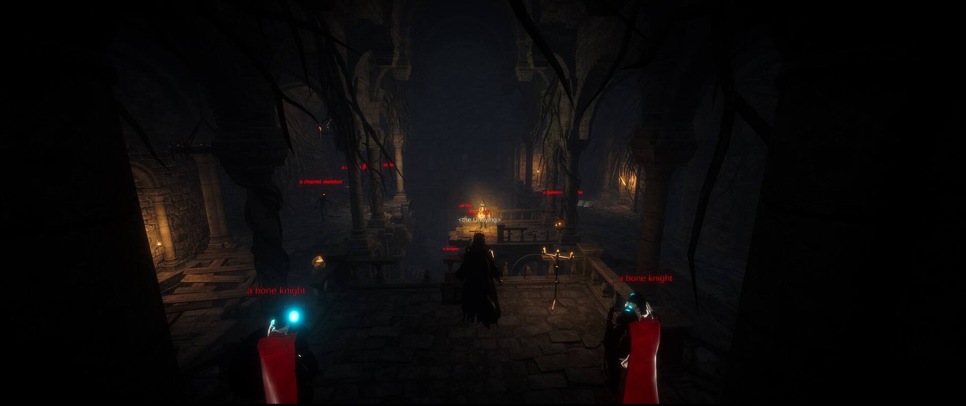 Additional systems under development include multi-weapon loadouts, allowing players to switch between two weapon sets in real time, and expanded dungeon mechanics within Gravandark. The dungeon now includes multiple floors with level-based difficulty segmentation, interactive elements such as locked cells requiring specific keys, and boss encounters with unique mechanics.